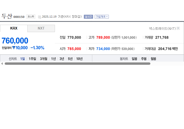 두산 주식의 재무 상태